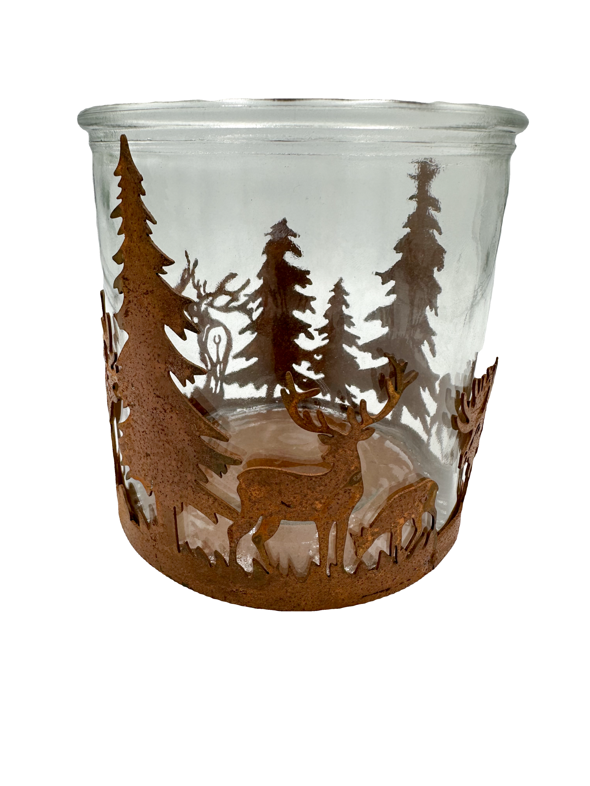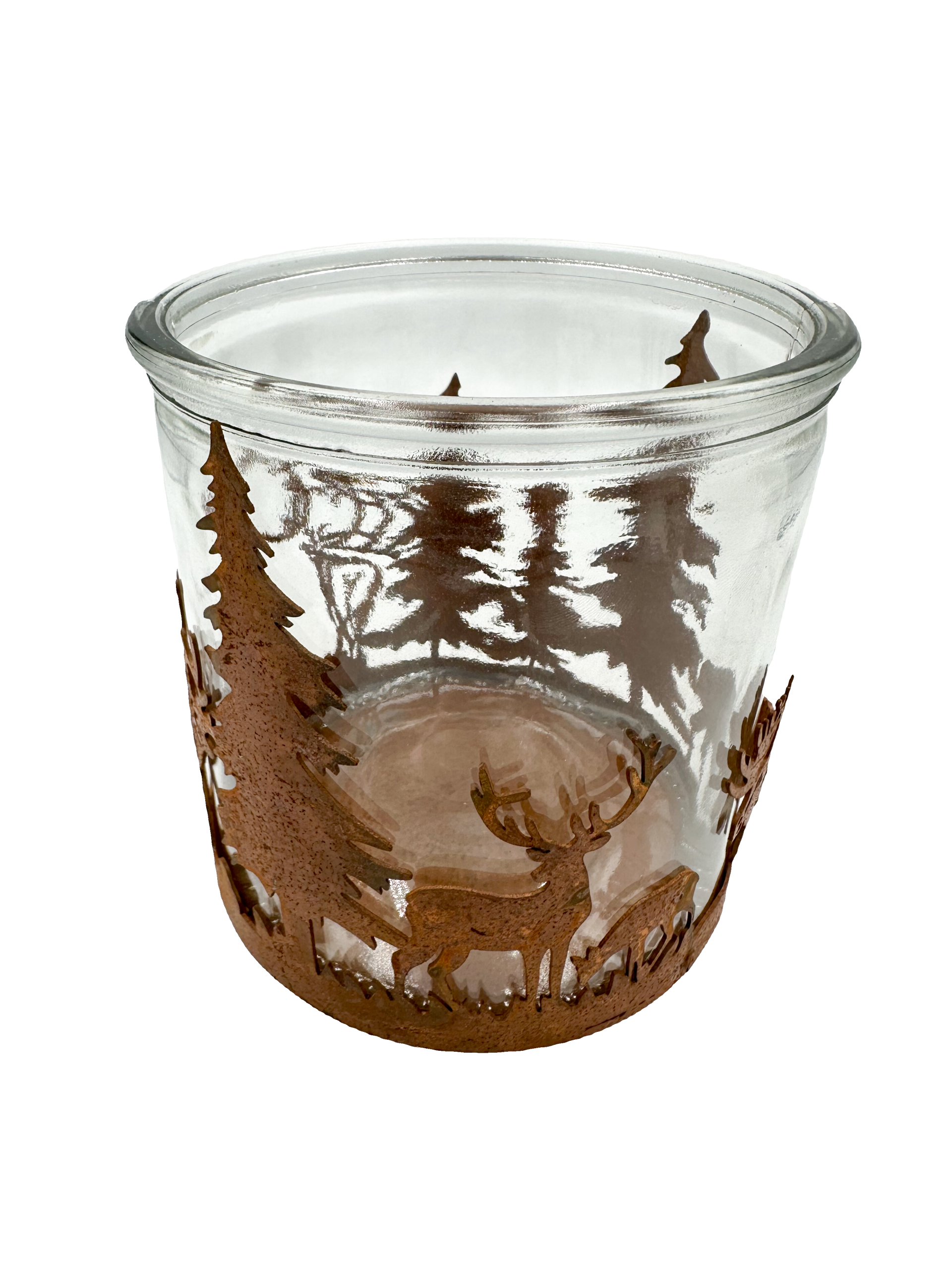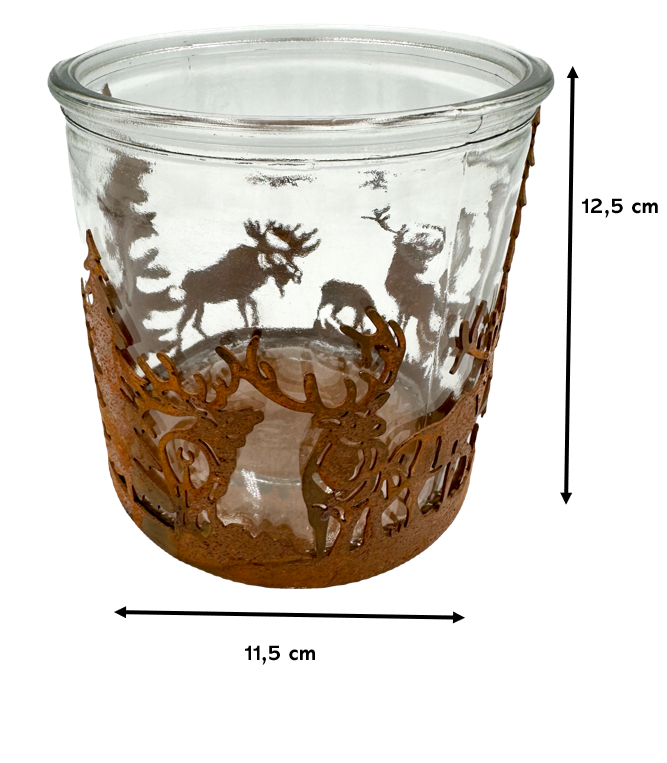 Roestkleurige metalen kaarsenhouder met glas – warme sfeerverlichting voor de winter
